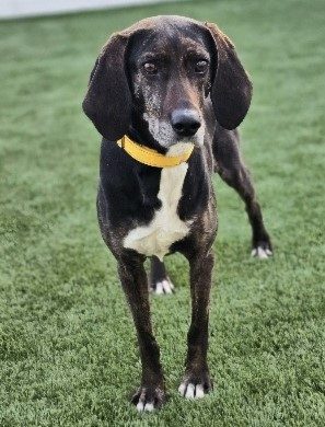 Daisy Duke is an approximately 5 year old hound. She is petite in stature. Very affectionate with her humans. She likes to be where her humans are. She appears to be potty trained. Good with other dogs. She is available to foster or foster to adopt. She does bay when excited or she can't see you or her dog friends.